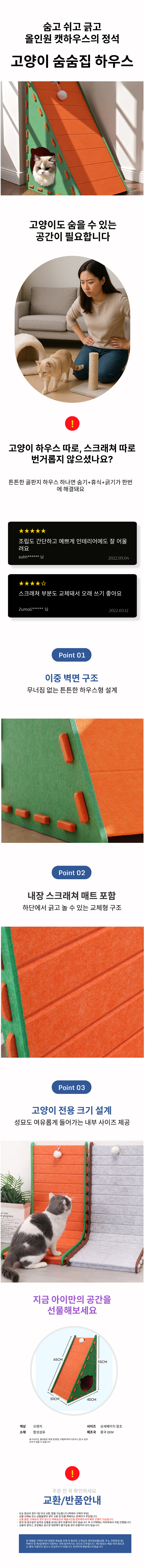 오렌지 삼각형 고양이 숨숨집 스크레쳐 놀이 하우스