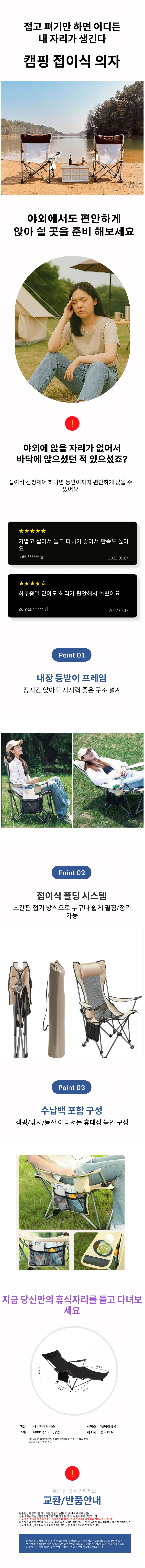 캠핑 접이식 의자 내구성 원터치 등받이 휴대용 낚시