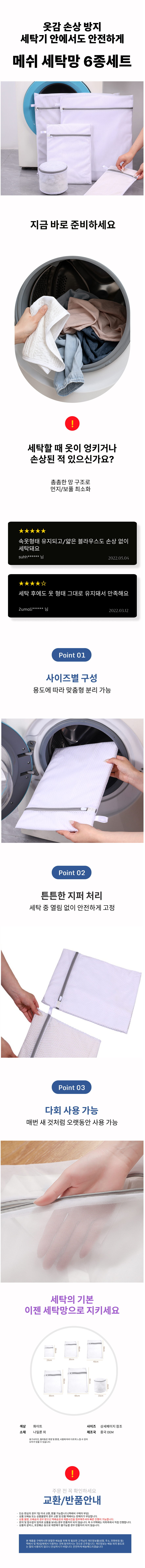 촘촘한 메쉬 세탁망 6종세트 옷감보호 깨끗한 세탁