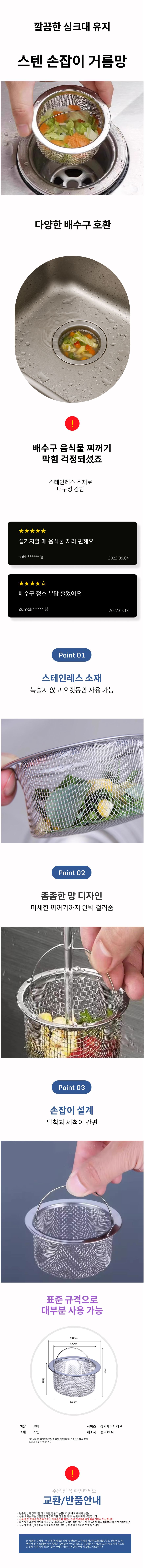 스텐 씽크대 거름망 개수대망 하수구 음쓰망 가정용