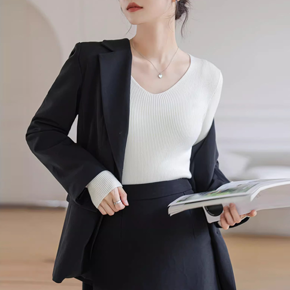G126962_슬림핏 V넥 골지 니트티셔츠 여리핏니트