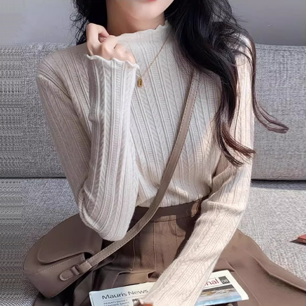 G126963_물결 하이넥 자가드 긴팔니트 티셔츠 반목니트