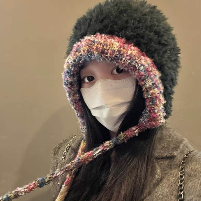 컬러풀한 로프 디자인 끈 귀마개햇 따듯한 겨울 모자
