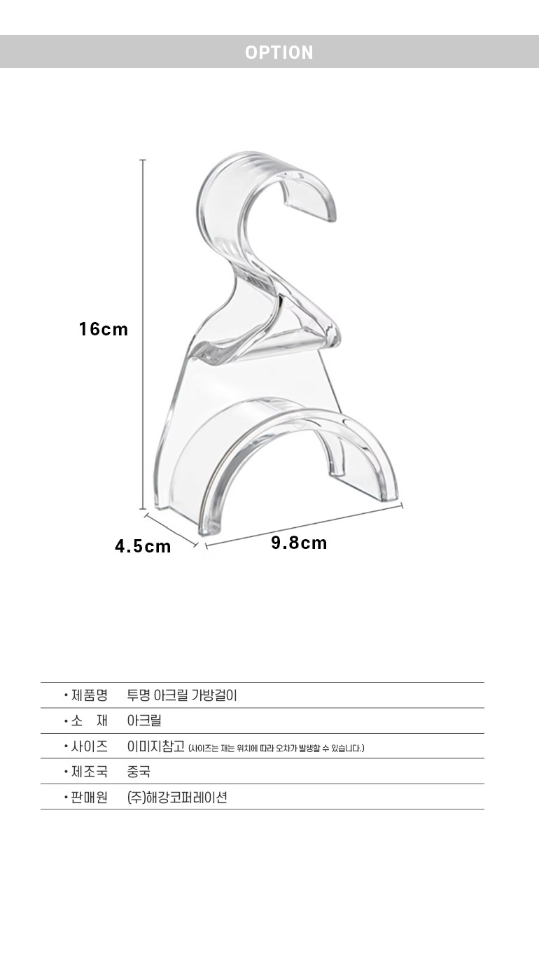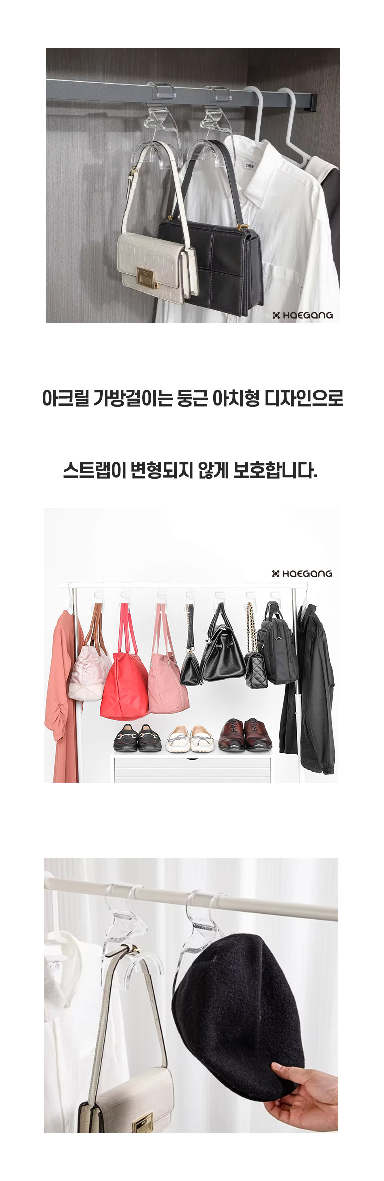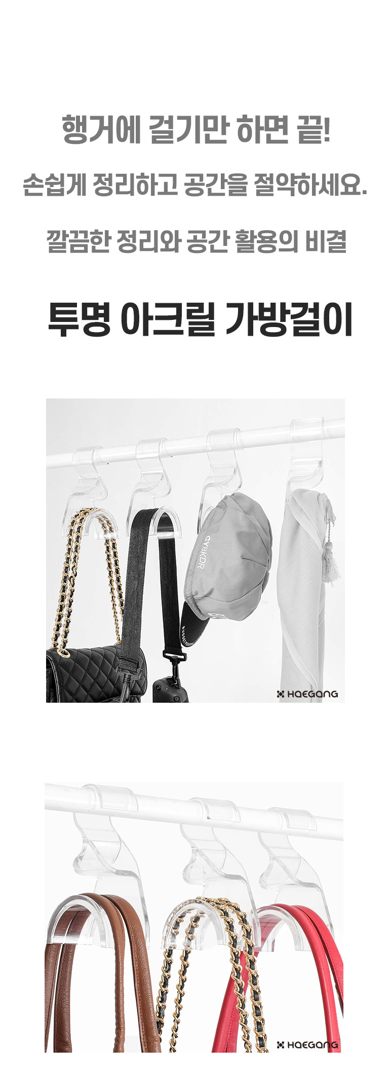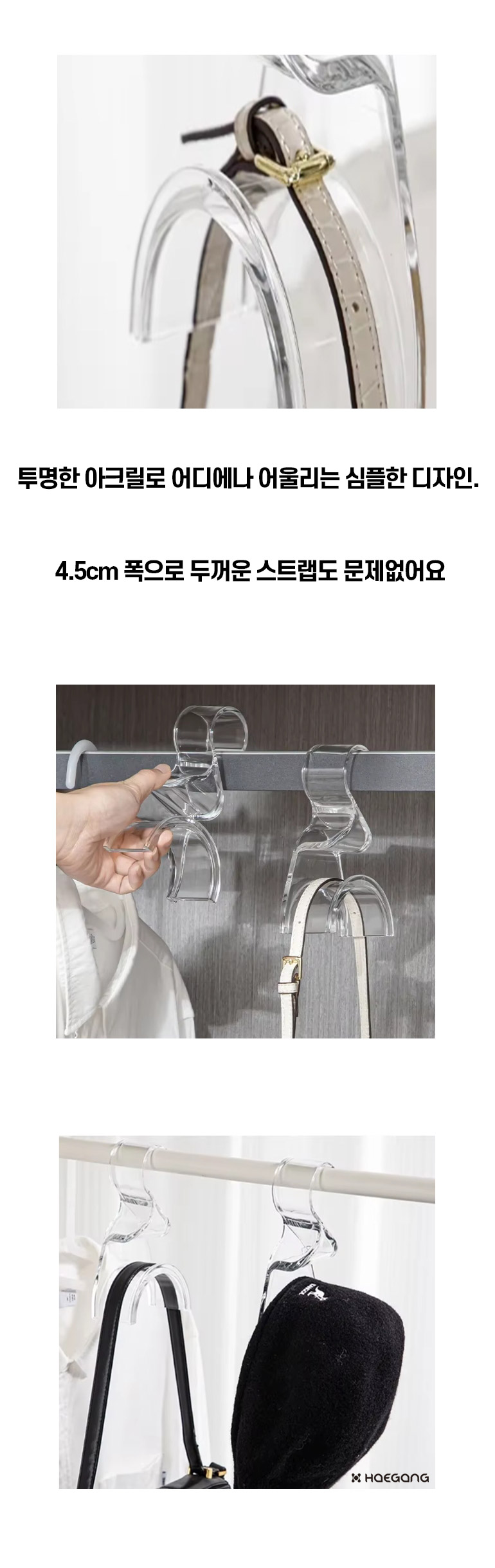 투명 아크릴 가방 걸이 옷걸이형 옷장 정리 넥타이 모자 소품 보관 수납 후크 고리 행거