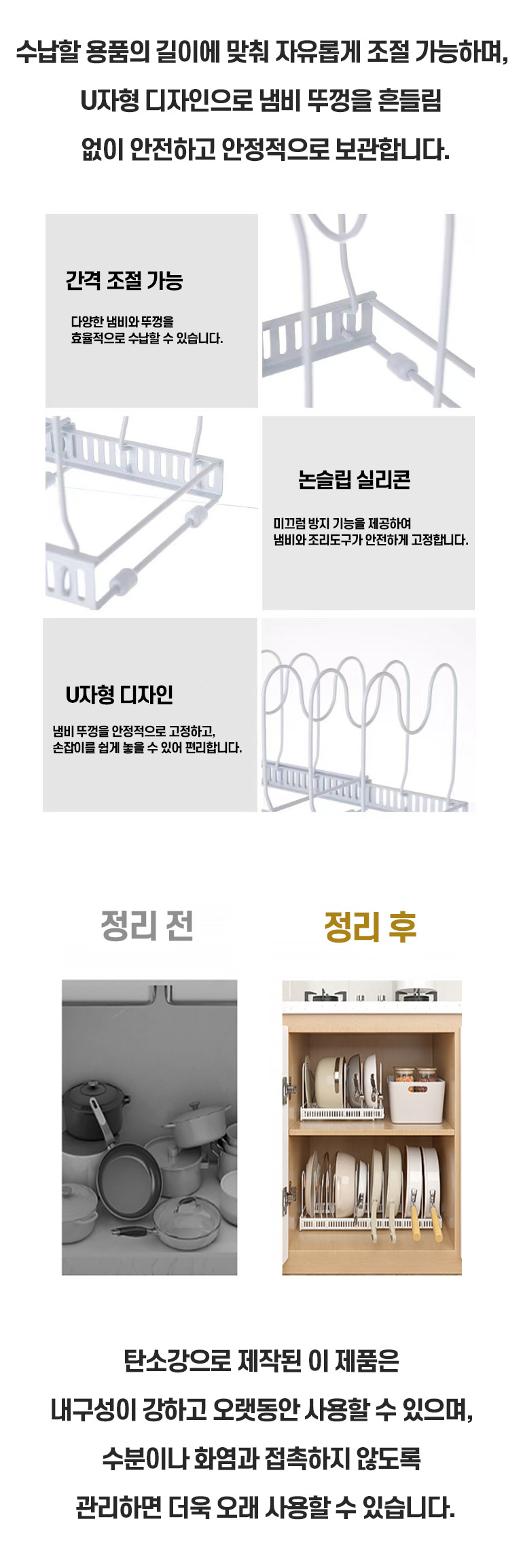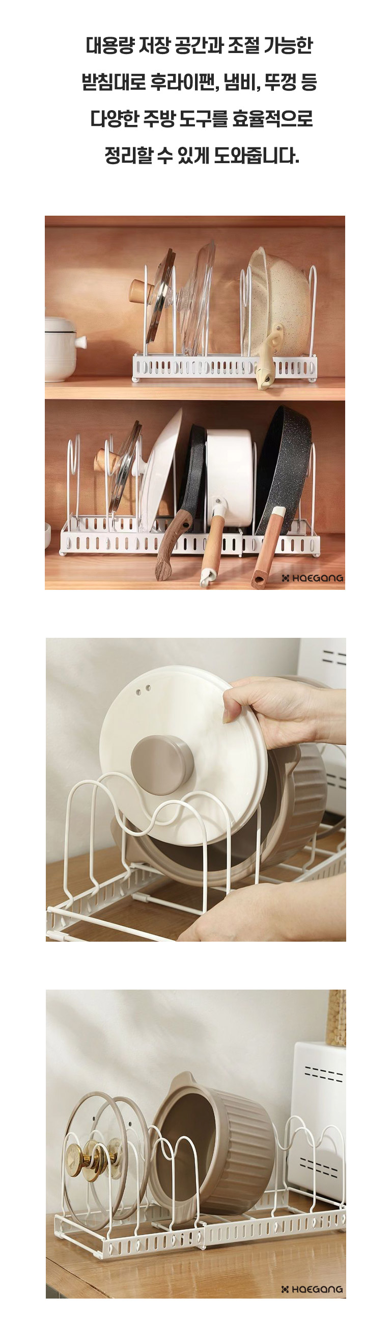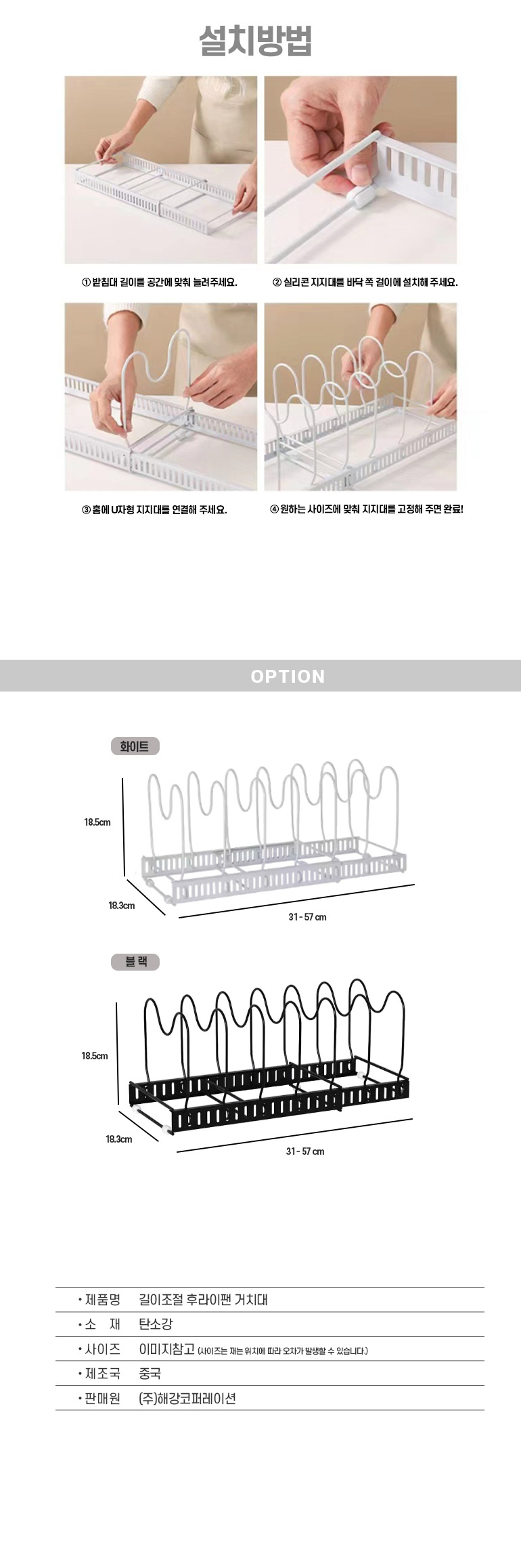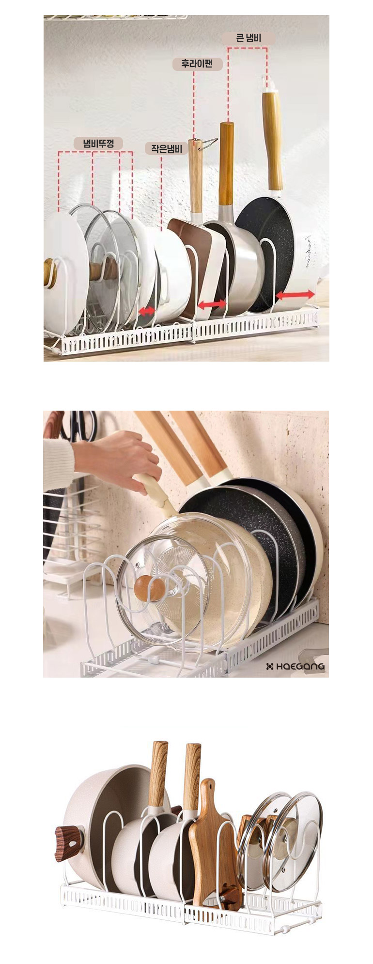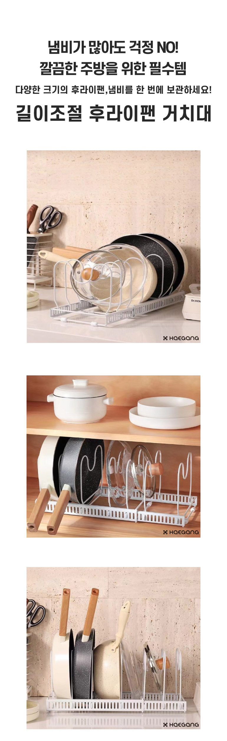 길이조절 후라이팬 거치대 선반 걸이 보관 정리대 싱크대 수납 정리 냄비 그릇 접시 주방