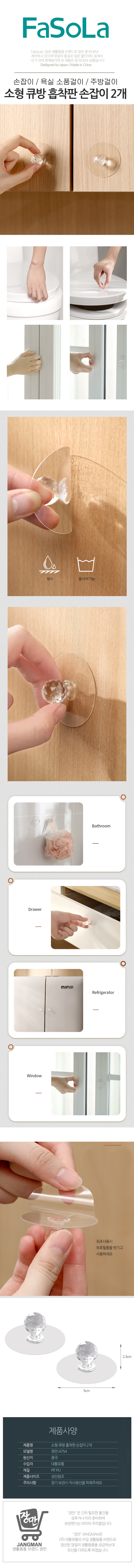장만A754 소형 큐방 흡착판 손잡이 2개 욕실걸이 소품걸이 주방