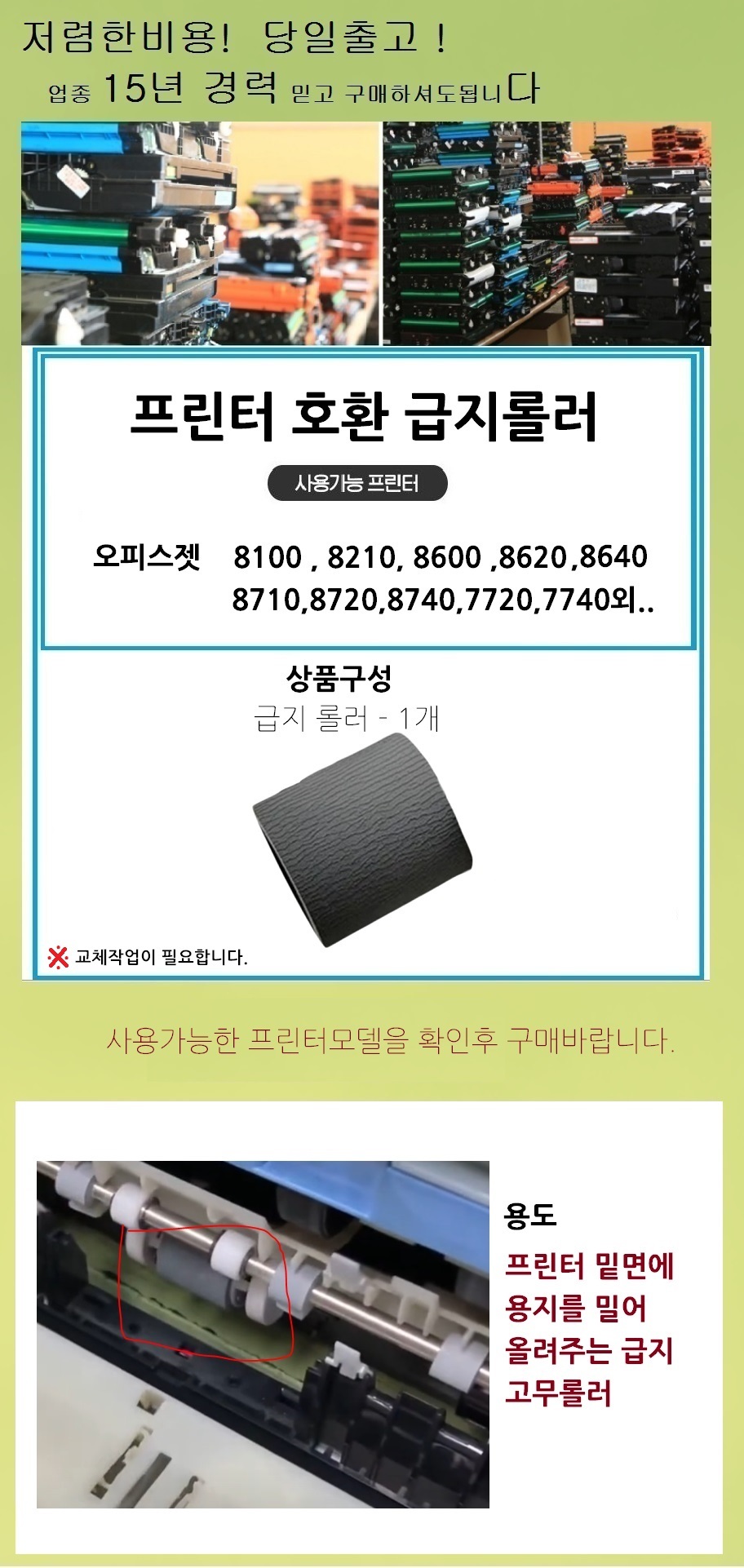 NEW hp 프리터 하단급지롤러 4개 8100,8600,8210 ,8620
