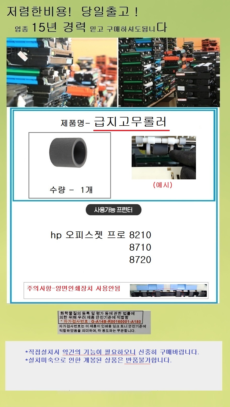 NEW 급지불량 여백밀림 급지하단고무롤러 8210 8710