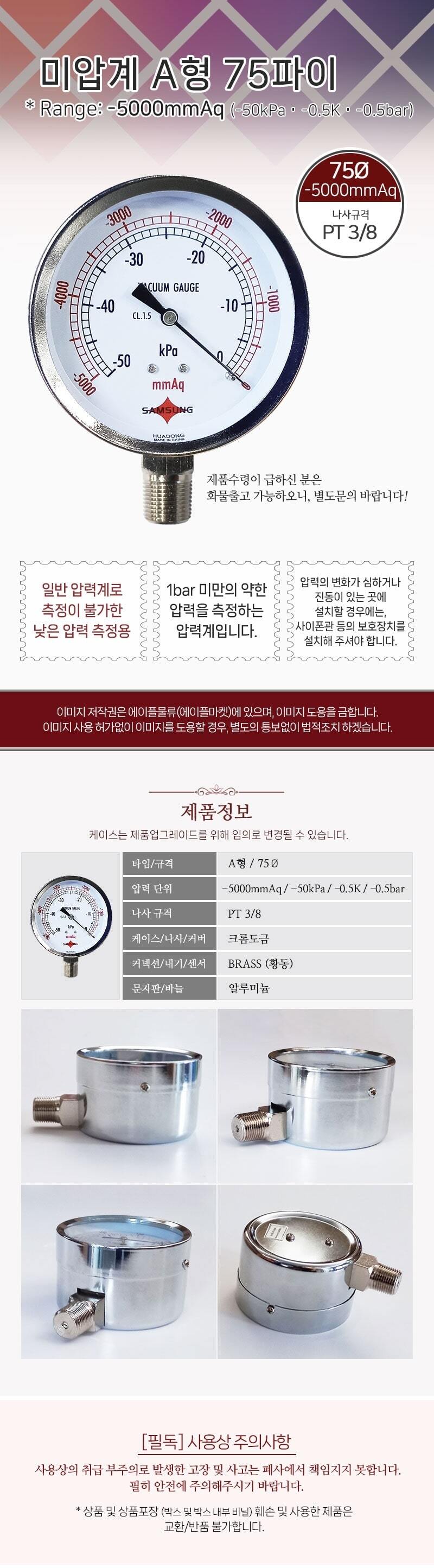 NEW A형 75파이 미압계 -5000mmAq PT3/8 낮은 압력 측정용 1bar미만 측정
