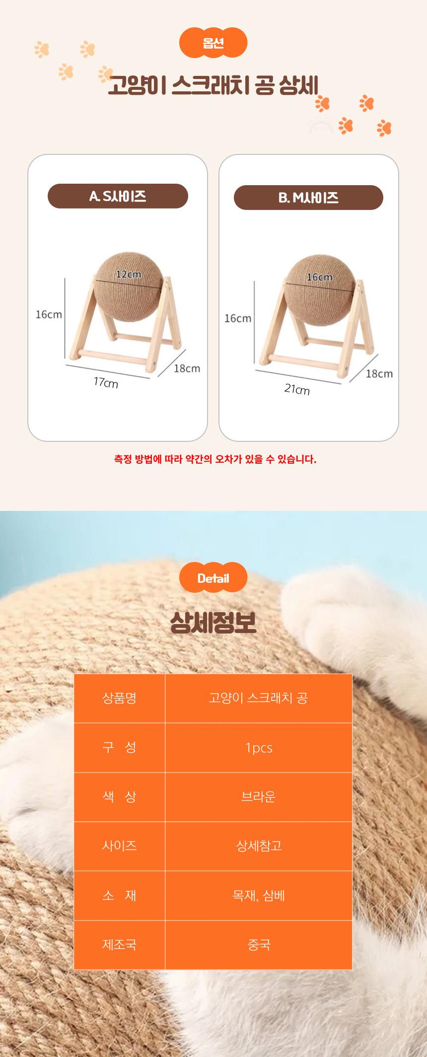 고양이 스크래쳐 삼베로프 회전볼 스크래치공-L