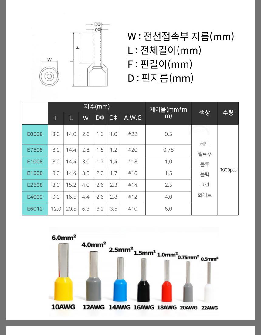 E0508 펜홀단자 1000pcs세트 페놀단자 터미널 커넥터