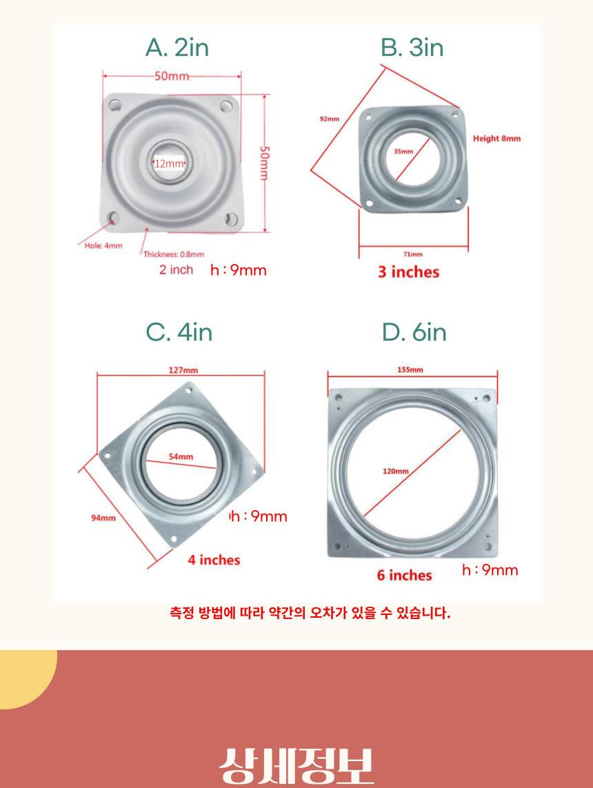 사각회전판 360도회전판 회전받침대 70mm x20개