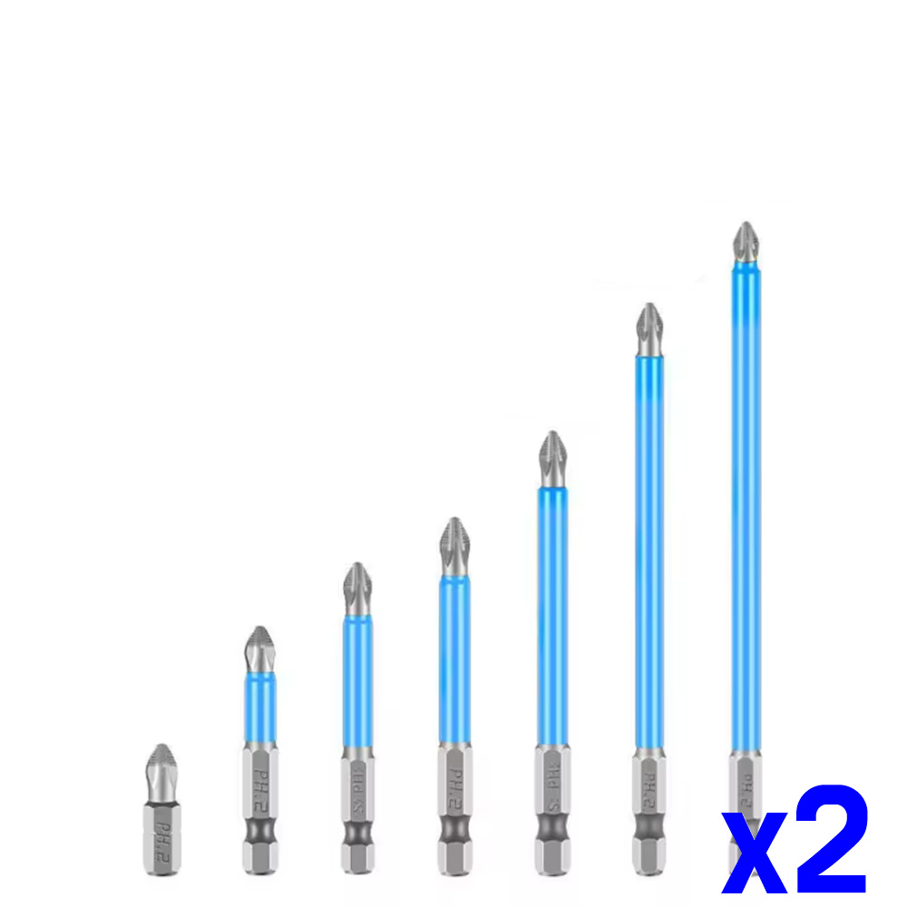 PH2 마그네트 드라이버 드릴비트 7p 육각기리 x2세트