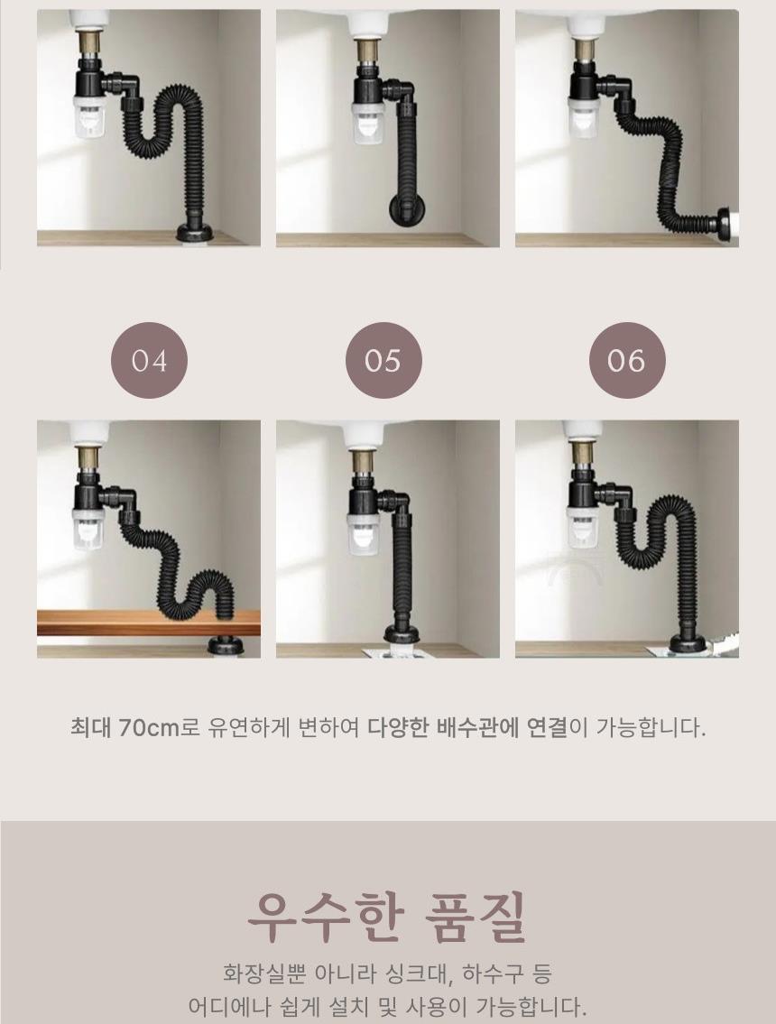 세면대배수관 자동개폐 냄새차단 욕실배수관 x2개