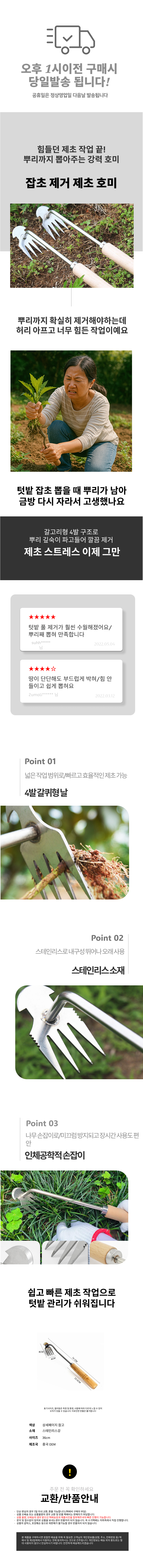 괭이 도구 4발 제초 갈고리 제거호미 텃밭작업 호미