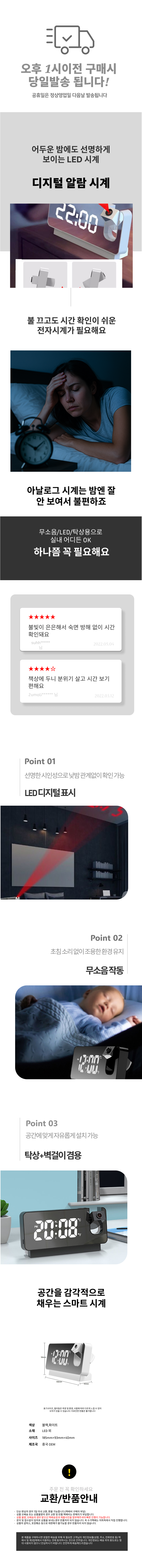 사무실 무소음 LED 인테리어 전자시계 표시 시계