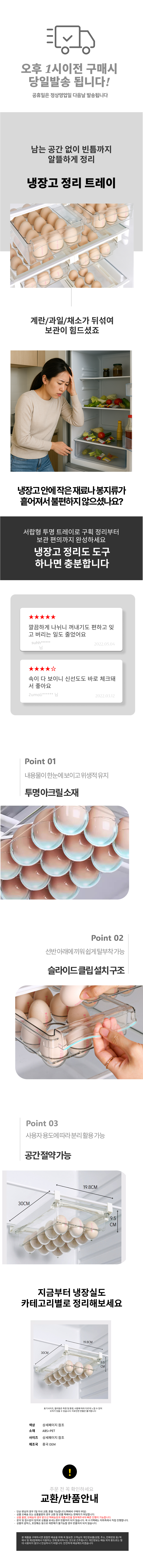 야채보관함 슬라이딩 에그키퍼 화이트 투명 트레이