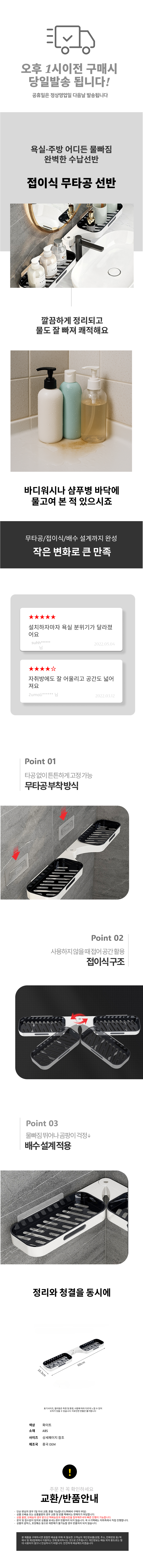 화장실용 정리대 샤워부스 무타공 선반 수납 선반