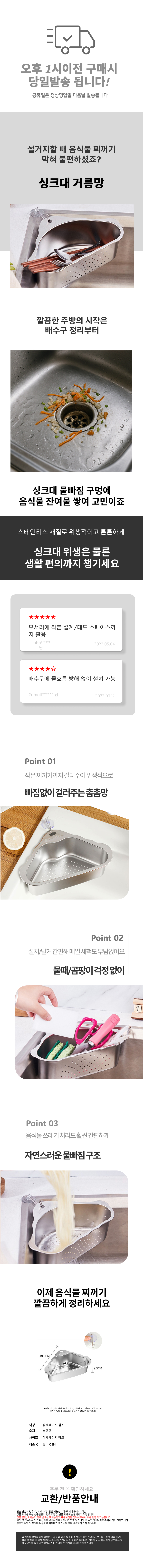 삼각 씽크대 무타공 거름망 음식물 걸이 채반 거름망