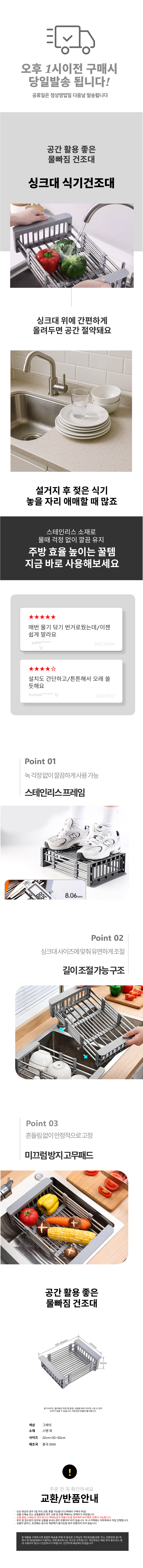 건조망 조절 물빠짐 식기 그릇 개수대 싱크랙 건조대