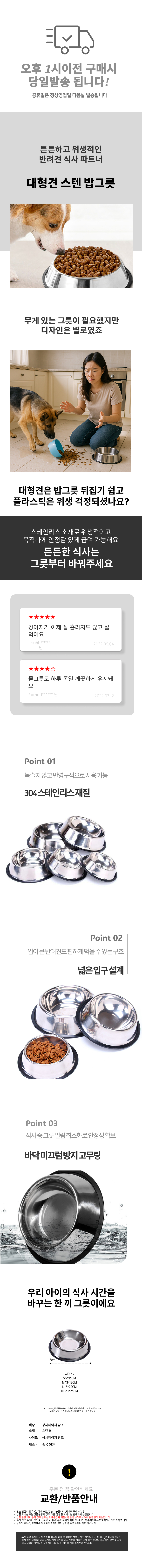 스텐 사료 휴대 애완동물 대형견 수반 논슬립 밥그릇