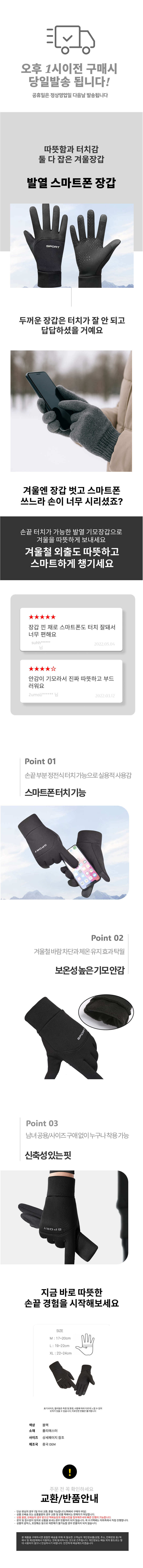 무지 슬림핏 레저 발열장갑 보온 미끄럼방지 장갑