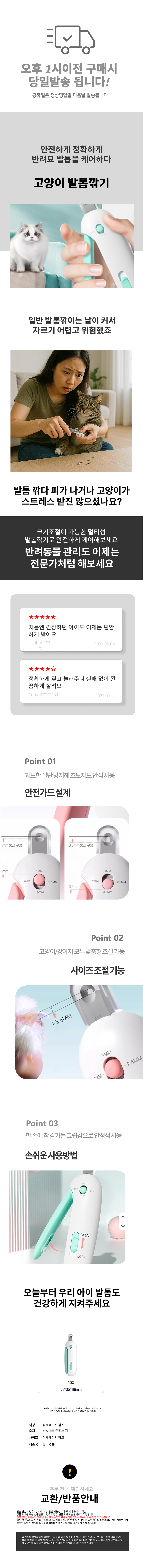 냥냥이 반려동물 오버컷 크기조절 혈관보호 발톱깎이