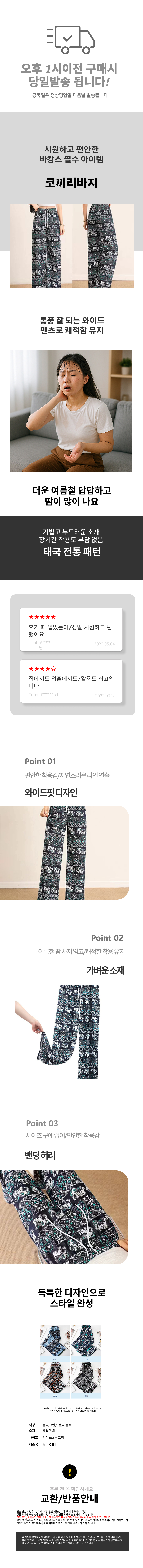 쿨팬츠 동남아 태국코끼리 여름 여성 고무줄 바지