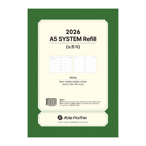 26년 에이피원 AP7 다이어리 리필내지 A5 월간 노트