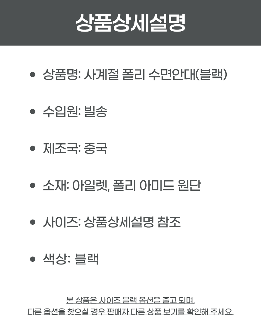 사계절 통기성 아일렛 폴리 수면 안대 (블랙)