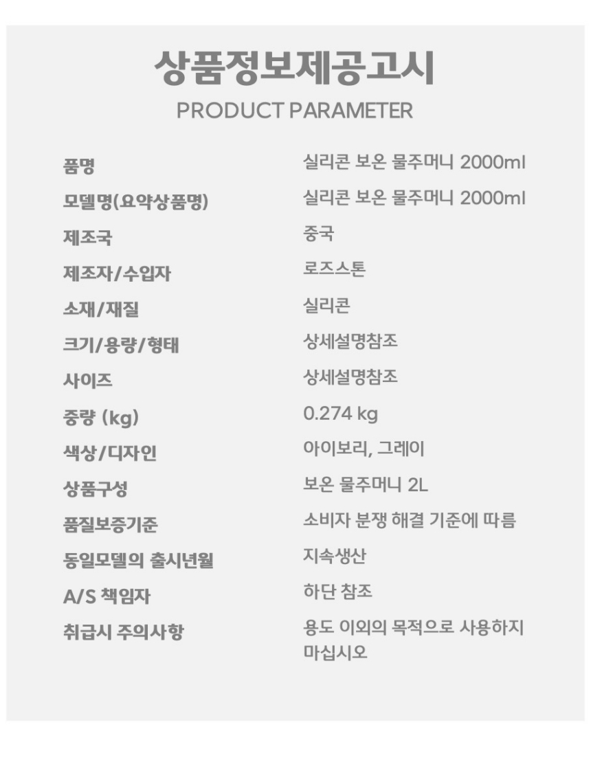 • 실리콘 보온 물주머니 2000ml 2L 2L