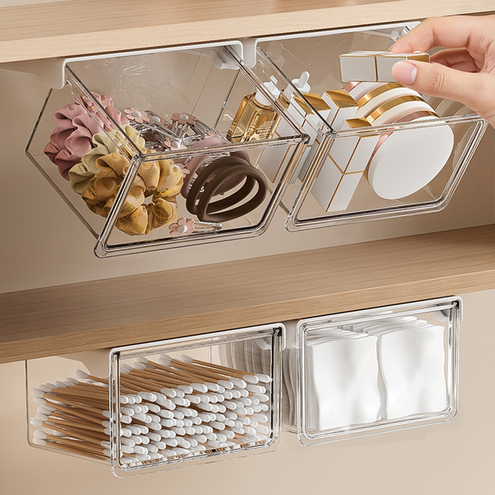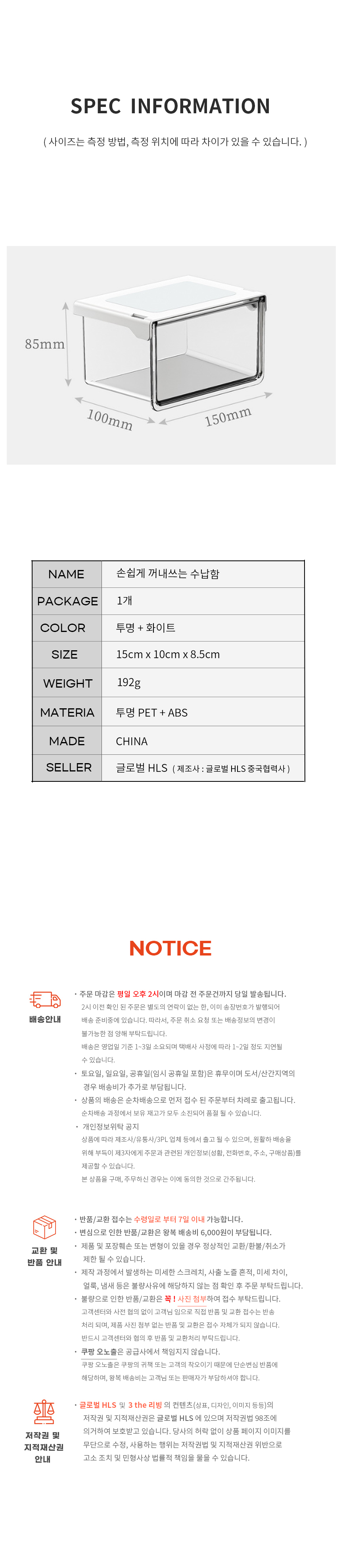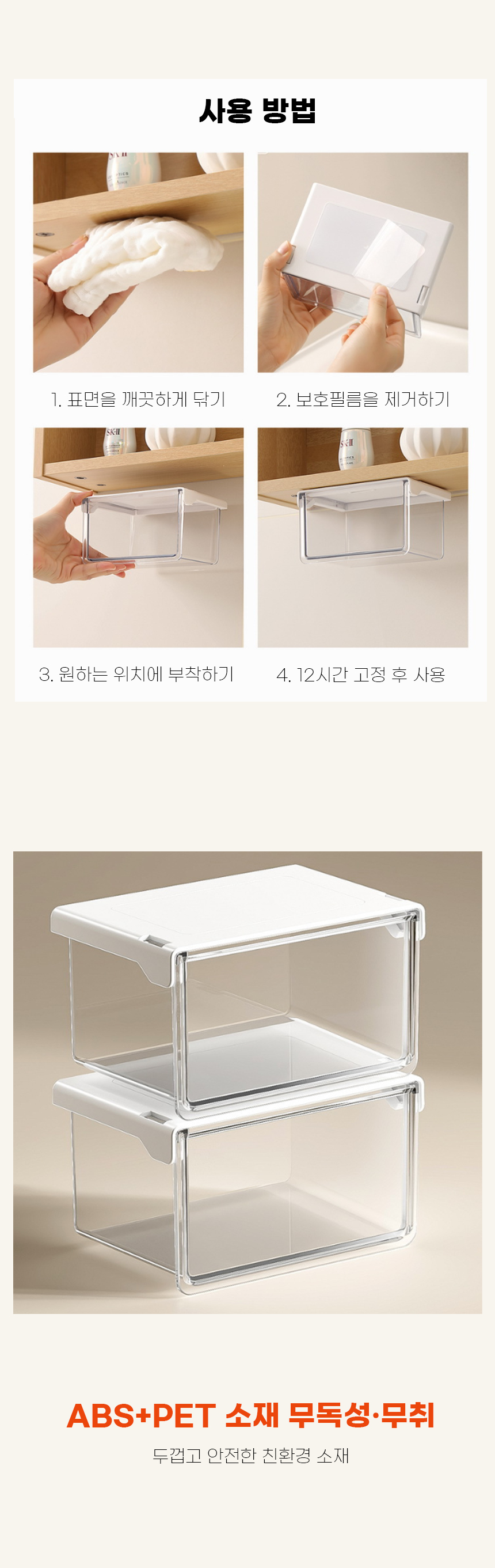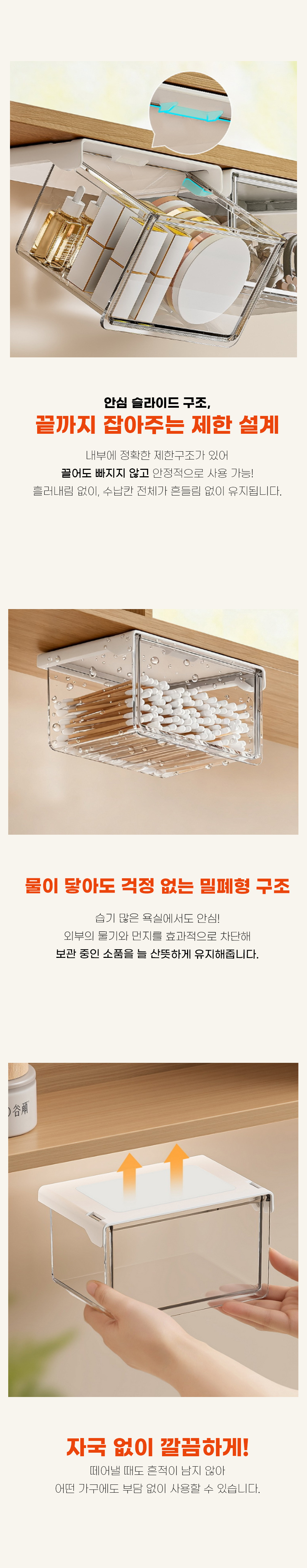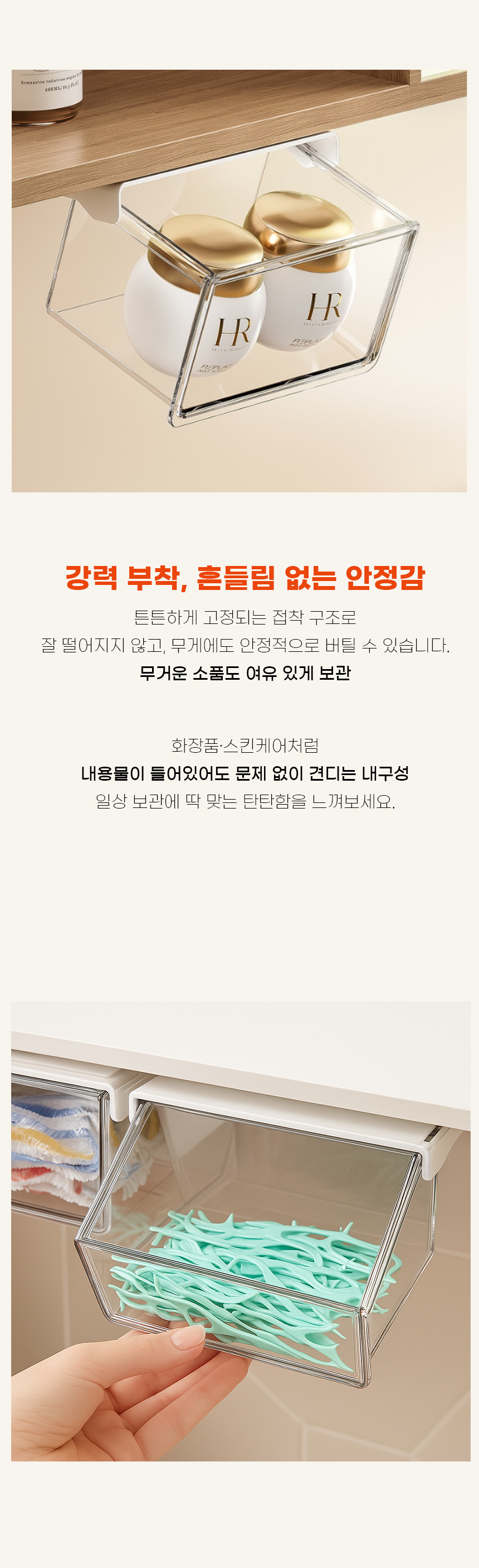 앞으로 내려와 편하게 사용되는 투명 소품함