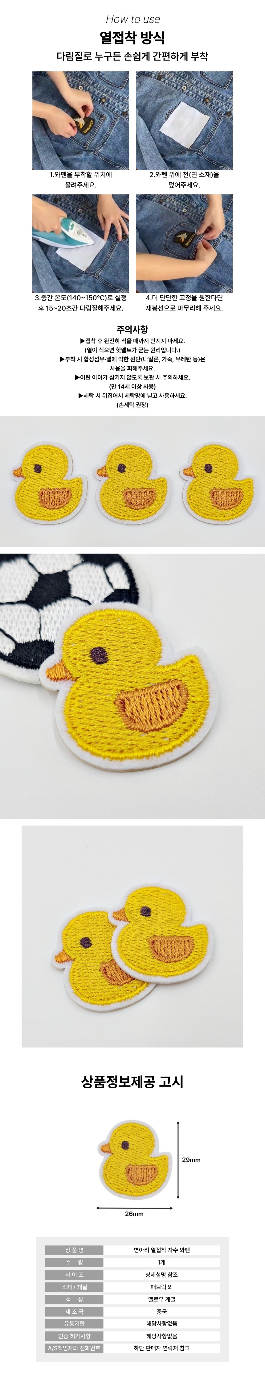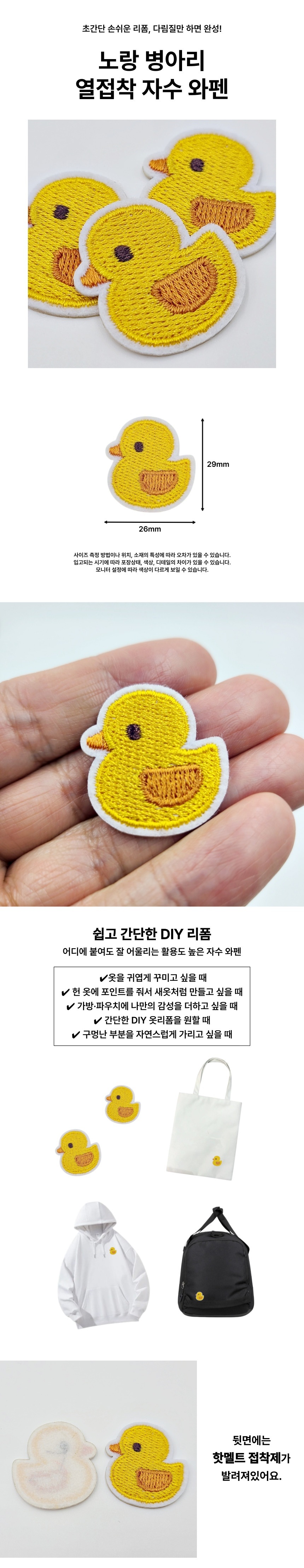DIY 의류 리폼 부자재 미니 병아리 패치 열접착식 와펜