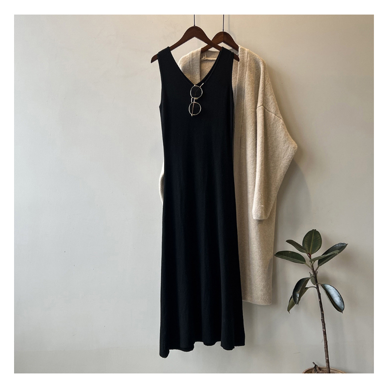G126348_고급스런 니트모직느낌 H라인 나시 슬림드레스 롱원피스