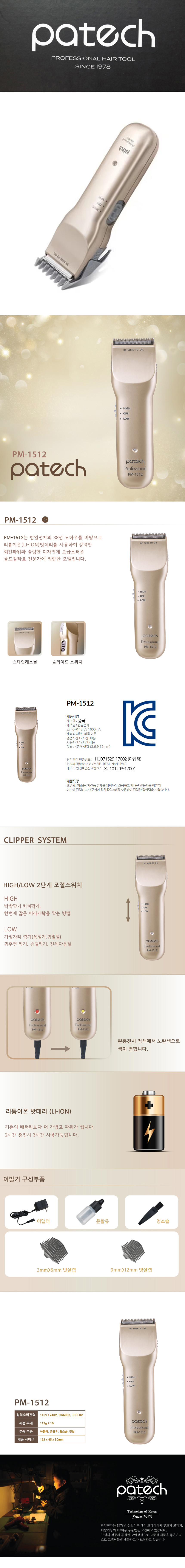 파텍1512 전문가용 이발기 충전식 헤어클리퍼 초경량 저소음 저진동