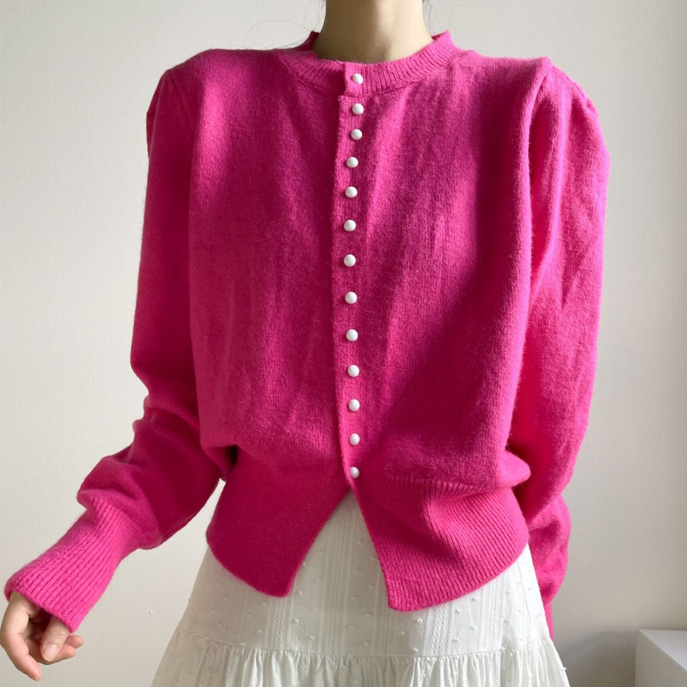 핑크울 니트 진주버튼 라운드넥 가디건다솜결