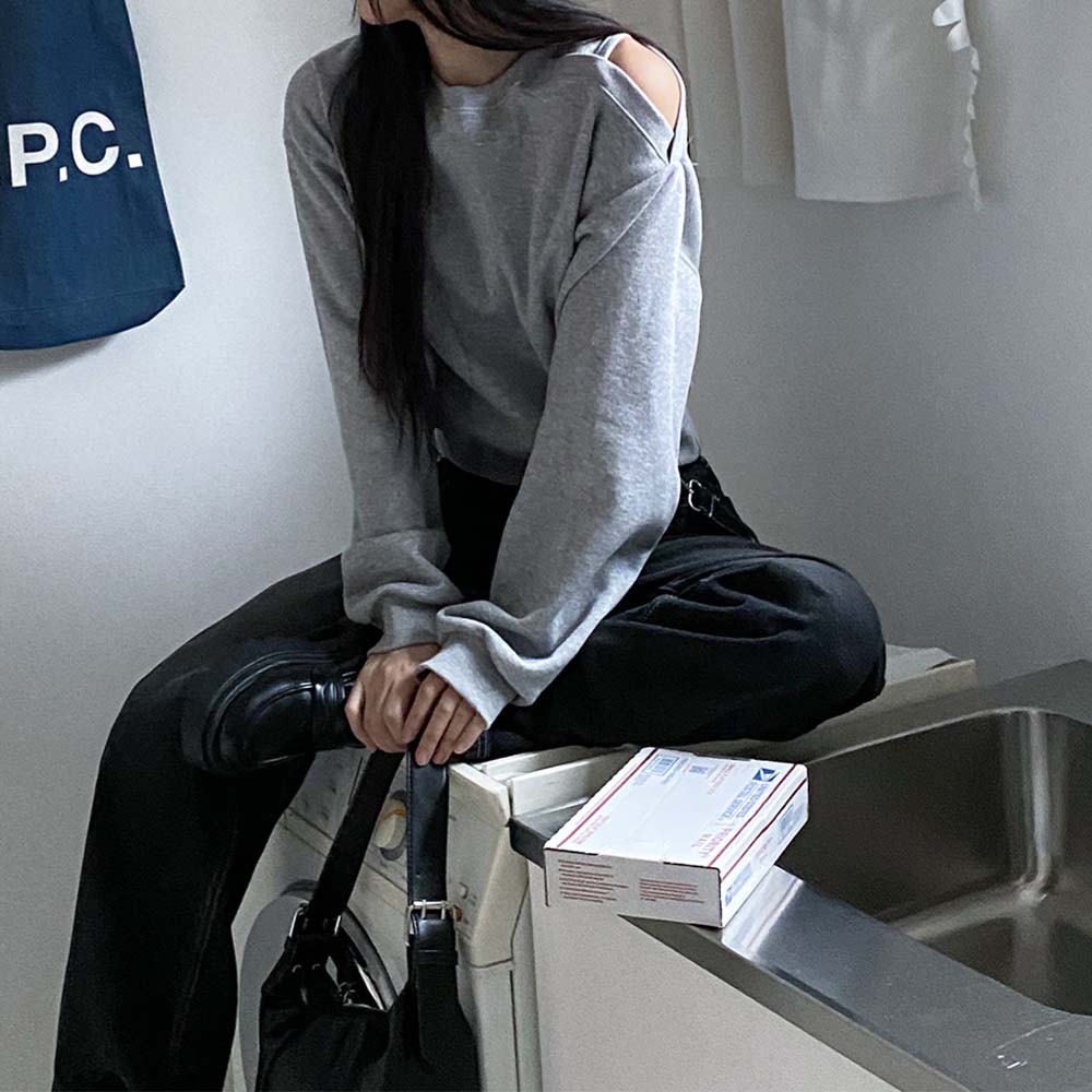 오픈숄더 기모 맨투맨 빅사이즈 티셔츠다솜결