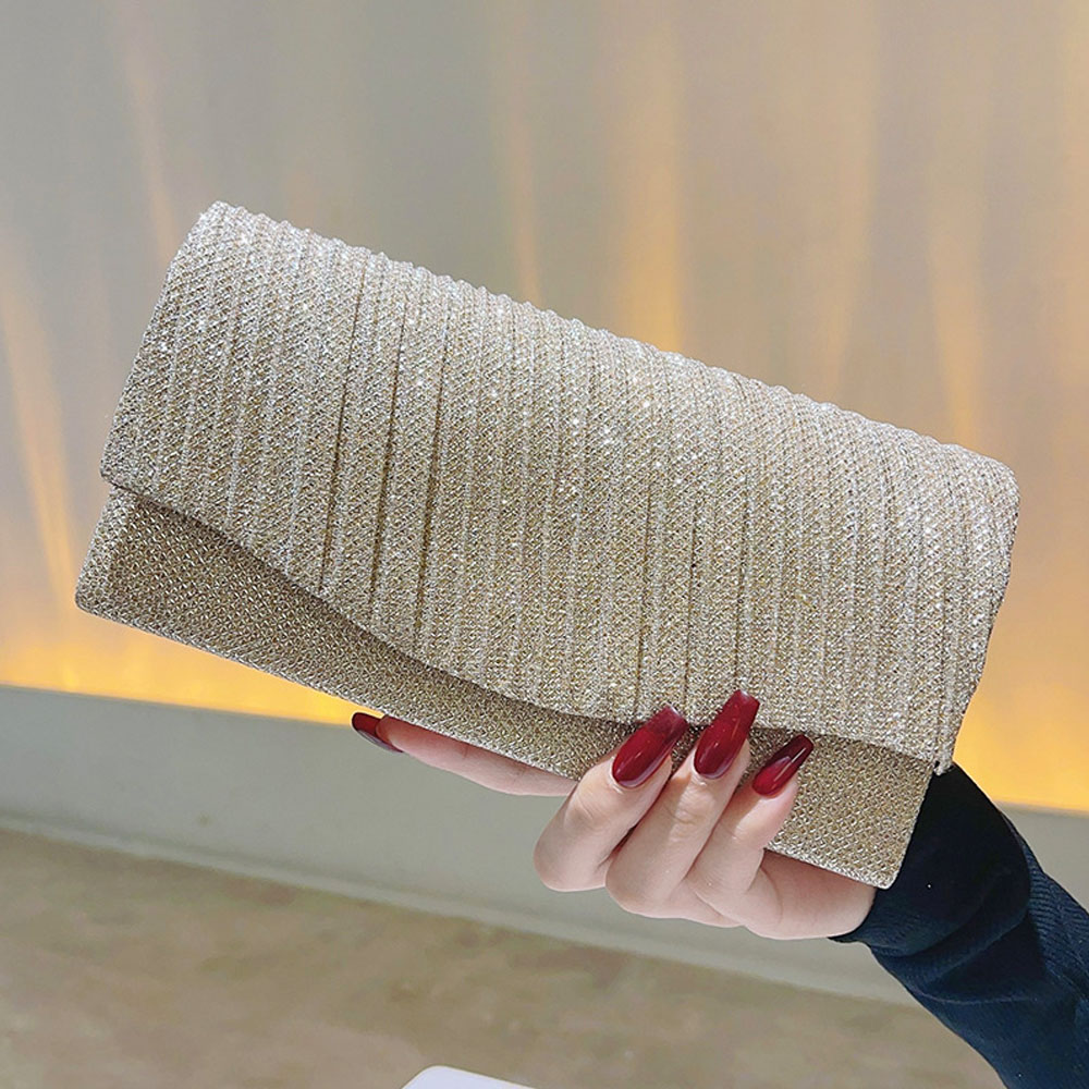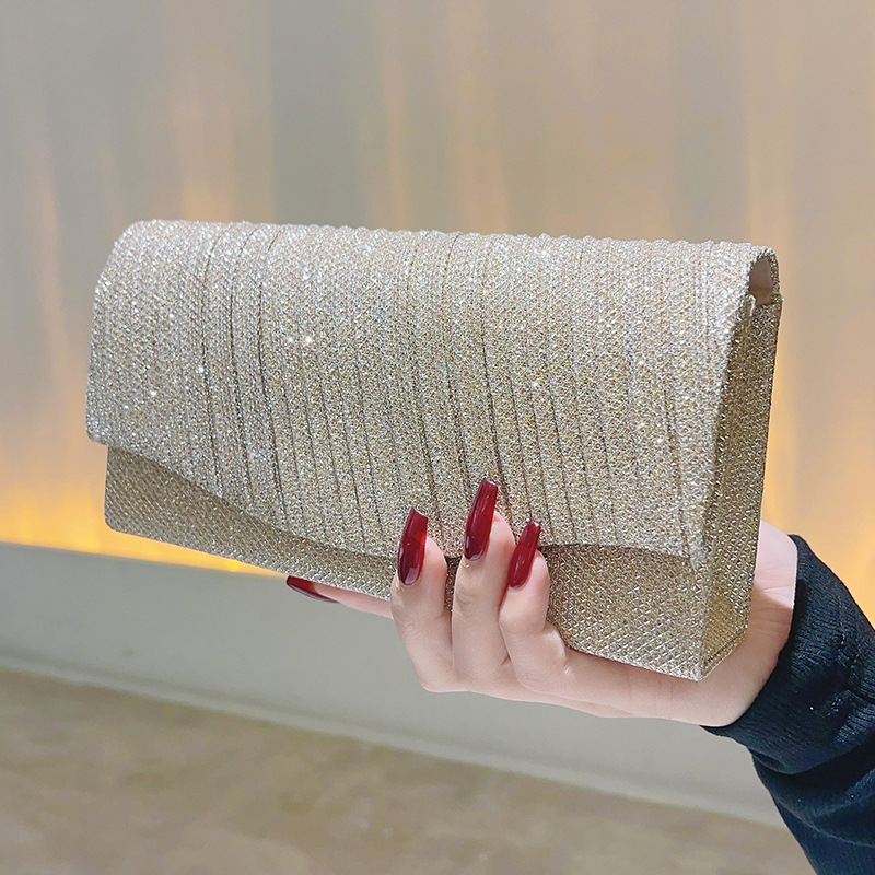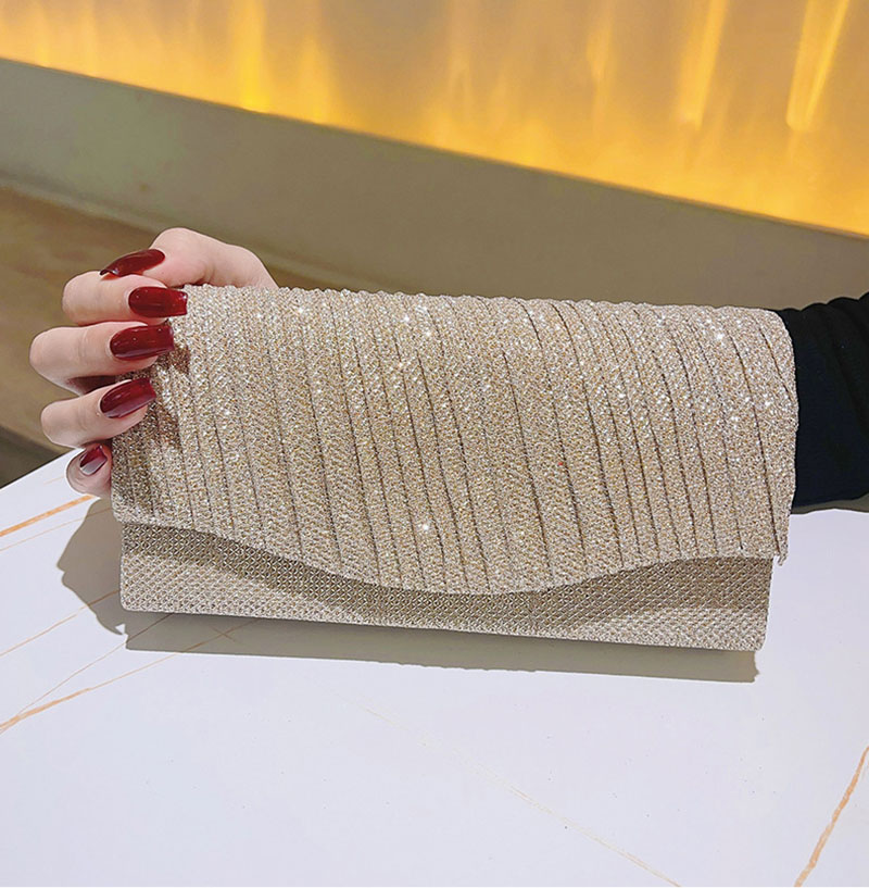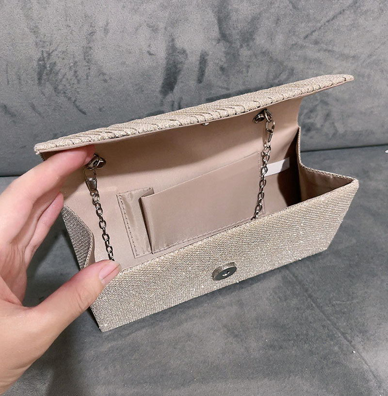G126929_여성 골드반짝이 클러치백 이브닝백 비즈체인핸드백