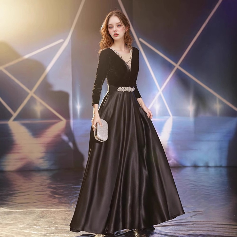 (대여) 하트라인 블랙벨벳 이브닝 드레스 교복 학생.