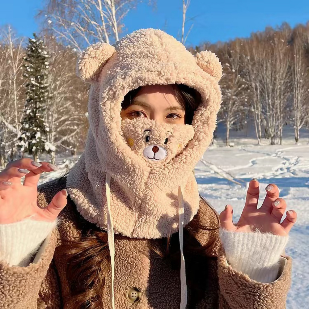 곰돌이 바라클라바 귀마개모자 뽀글이 방한귀마개
