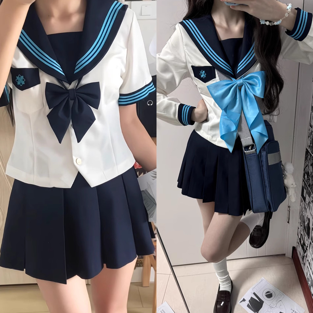블루 세줄라인 마린 세라복 반팔or긴팔 교복세트.