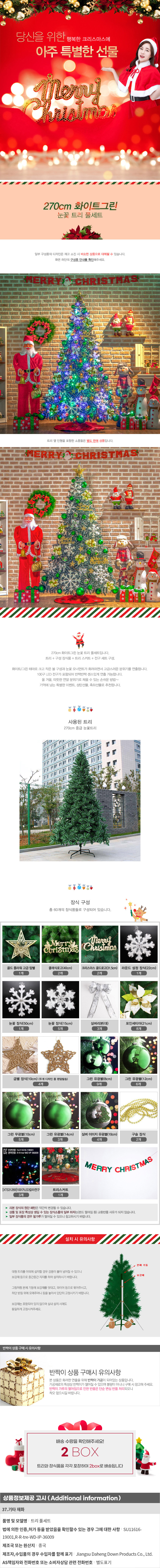 270cm 화이트그린 눈꽃 트리 풀세트 0389-6984A(3)