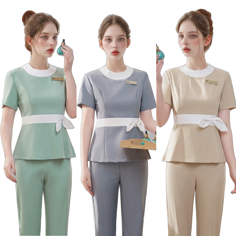 프로페셔널 라운드넥 리본 디테일 스파 클리닉 유니.