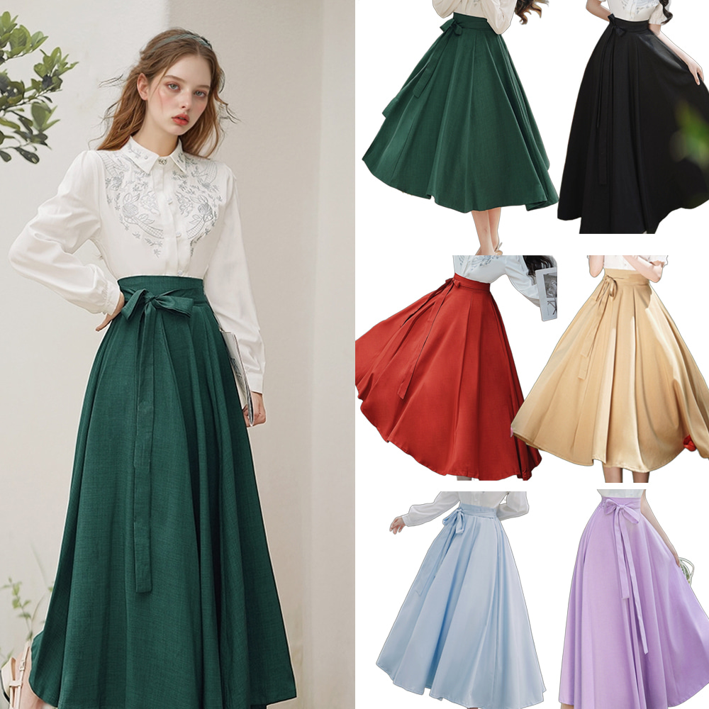 빈티지 로맨틱 리본 디테일 A라인 롱스커트 의상세트.