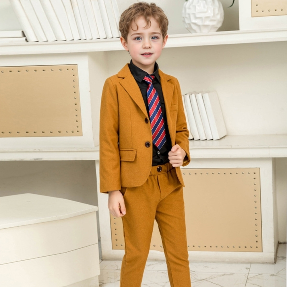 데이지 오커색 더블버튼 턱시도 정장 세트.