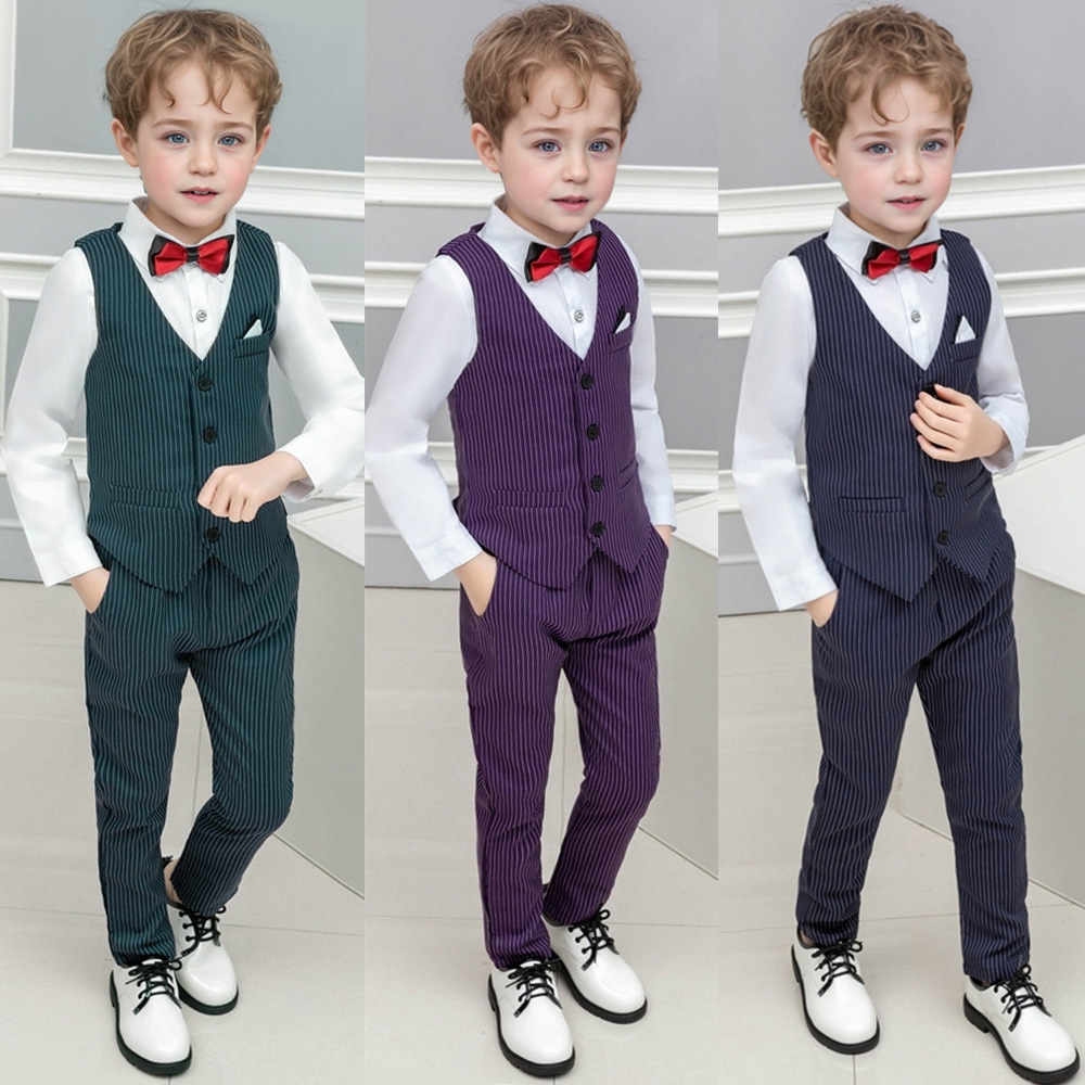 매트 스트라이프 도트라인 4버튼 양장조끼 정장세트.