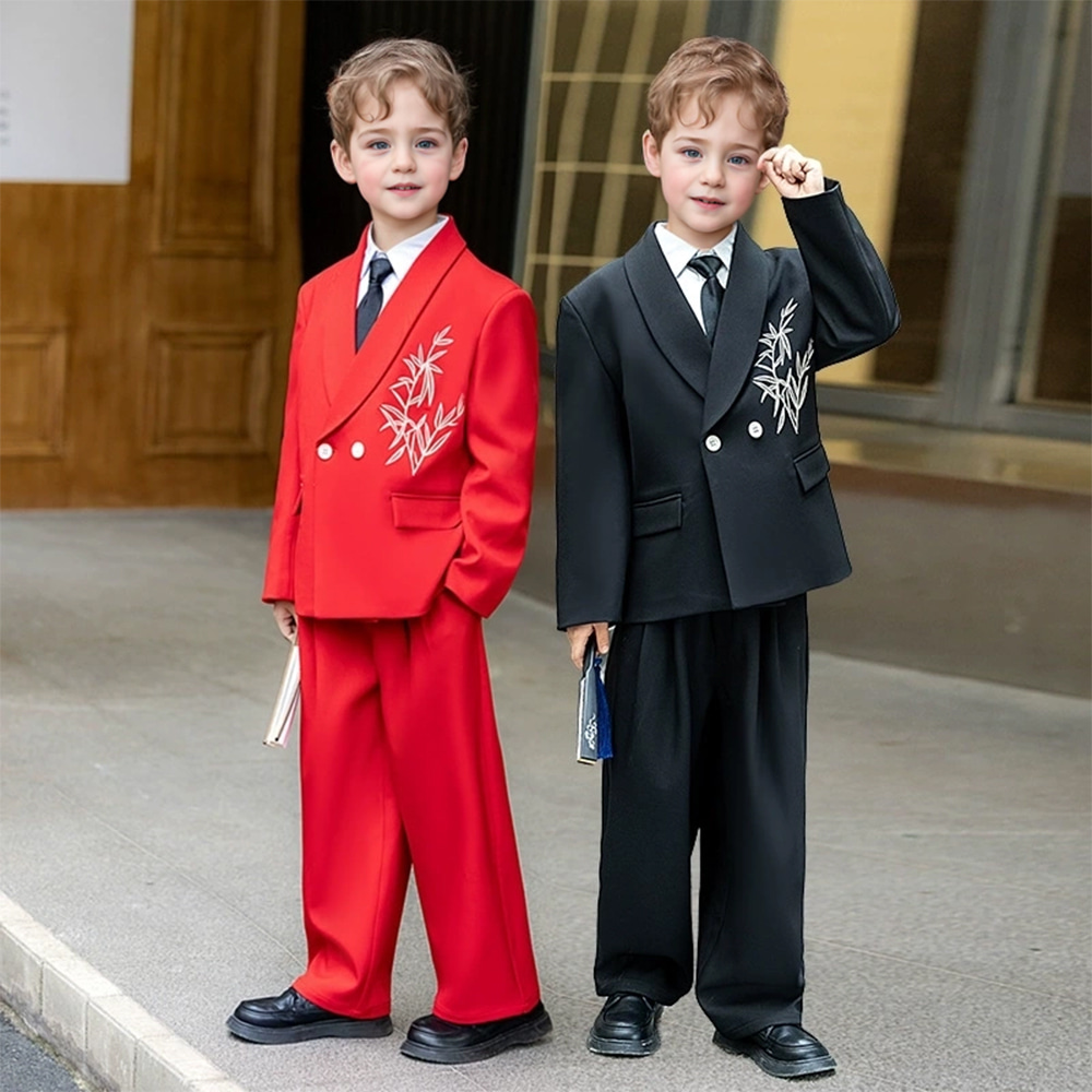 (대여) 브레스티드 대나무 자수 오버핏 턱시도 정장.