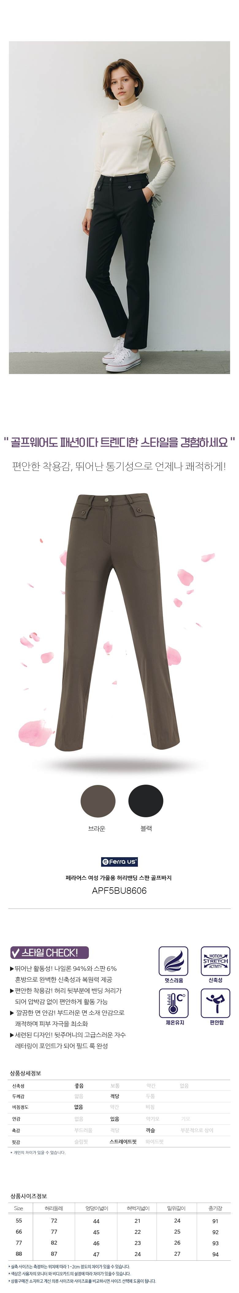 페라어스 여성 가을용 허리밴딩 스판 골프바지 APF5BU8606