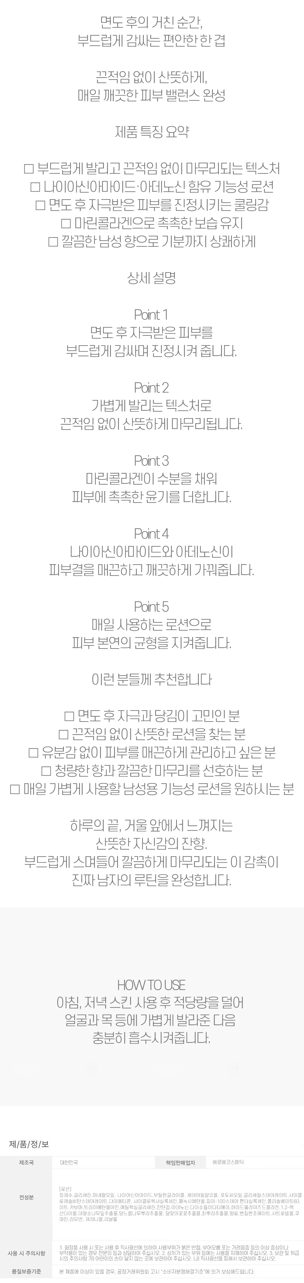 부드럽게 발리고 끈적임 없이 마무리 남성 로션 300ml