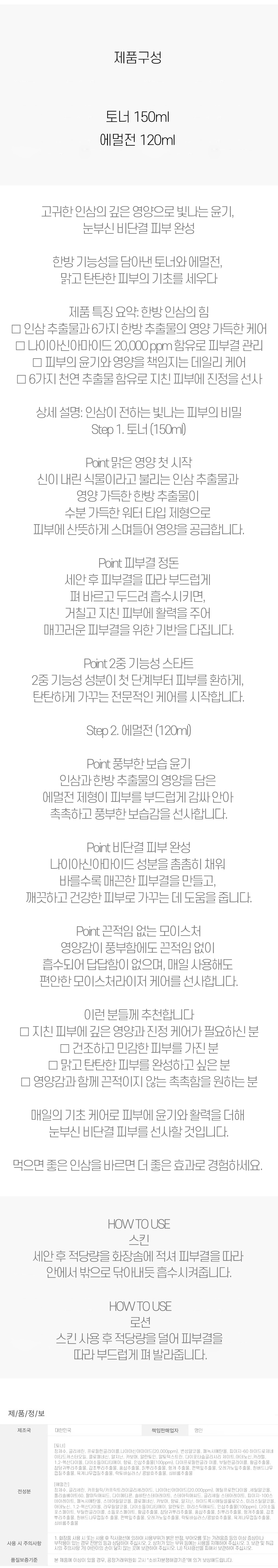 인삼 깊은 영양으로 빛나는 윤기 토너 1개 에멀전 1개